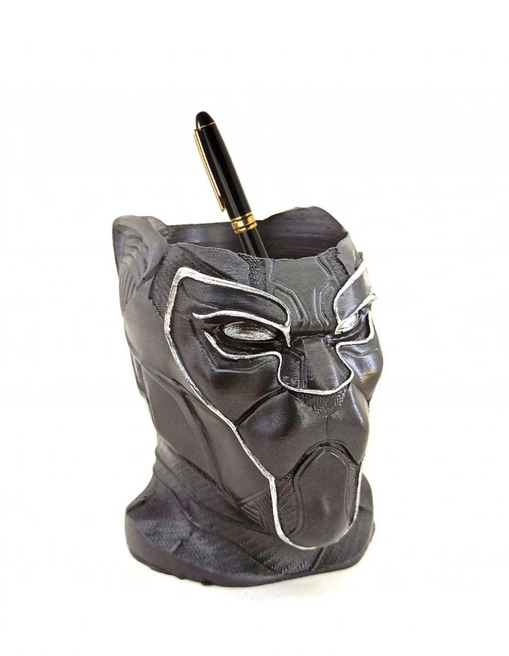 POLYESTER BLACK PANTHER KALEMLİKÜrün ÖzellikleriPolyester Black Panther Kalemlik, Marvel hayranları ve koleksiyon severler için özel olarak tasarlanmış şık ve işlevsel bir masaüstü aksesuarıdır. Dayanıklı polyester malzemeden üretilmiş olup, uzun süreli kullanım sunar. Kalem, fırça ve masa aksesuarlarını düzenlemek için geniş iç hacme sahiptir. Detaylı tasarımı sayesinde hem işlevsel bir organizer hem de dekoratif bir koleksiyon ürünü olarak kullanılabilir.Paket İçeriği1 Adet Polyester Black Panther Kalemlik