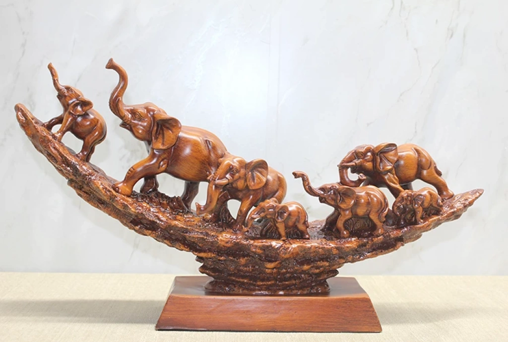 POLYESTER FİL SÜRÜSÜÜrün Özellikleri48x9x27 cm ölçülerindeki bu polyester fil sürüsü biblosu, detaylı işçiliği ve ahşap görünümlü tasarımı ile bulunduğu ortama estetik bir hava katmaktadır. Sekiz farklı fil figürünün uyum içinde dizildiği kompozisyon, hem doğal yaşamı hem de birlik ve güç temasını yansıtır. Dayanıklı polyester malzemeden üretilmiş olup masa üstü, raf ve vitrin dekorasyonu için şık bir seçenektir. Modern ve klasik dekorlara uyum sağlayacak yapısı ile dikkat çeker.Paket İçeriği1 adet Polyester Fil Sürüsü