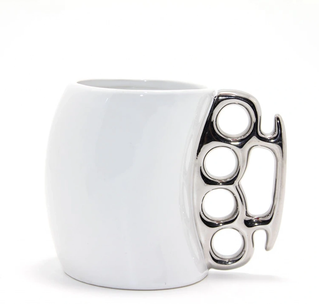 PORSELEN MUŞTA TASARIMLI KUPA BARDAK GÜMÜŞ RENKÜrün ÖzellikleriPorselen Muşta Tasarımlı Kupa Bardak, şık beyaz yüzeyi ve dikkat çekici gümüş renkli muşta detayıyla modern bir tasarıma sahiptir. Dayanıklı porselen malzemeden üretilmiş olup, sıcak ve soğuk içecekler için ideal bir kullanım sunar. Gümüş renkli muşta tasarımı, kupaya sıradışı ve stil sahibi bir görünüm kazandırırken, evde, ofiste veya hediye olarak tercih edilebilecek eşsiz bir kupa seçeneği sunar.Paket İçeriği1 adet Porselen Muşta Tasarımlı Kupa Bardak