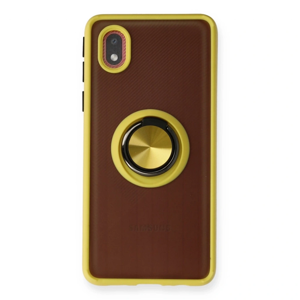 Samsung Galaxy A01 Core Kılıf Montreal Yüzüklü Silikon Kapak - Sarı