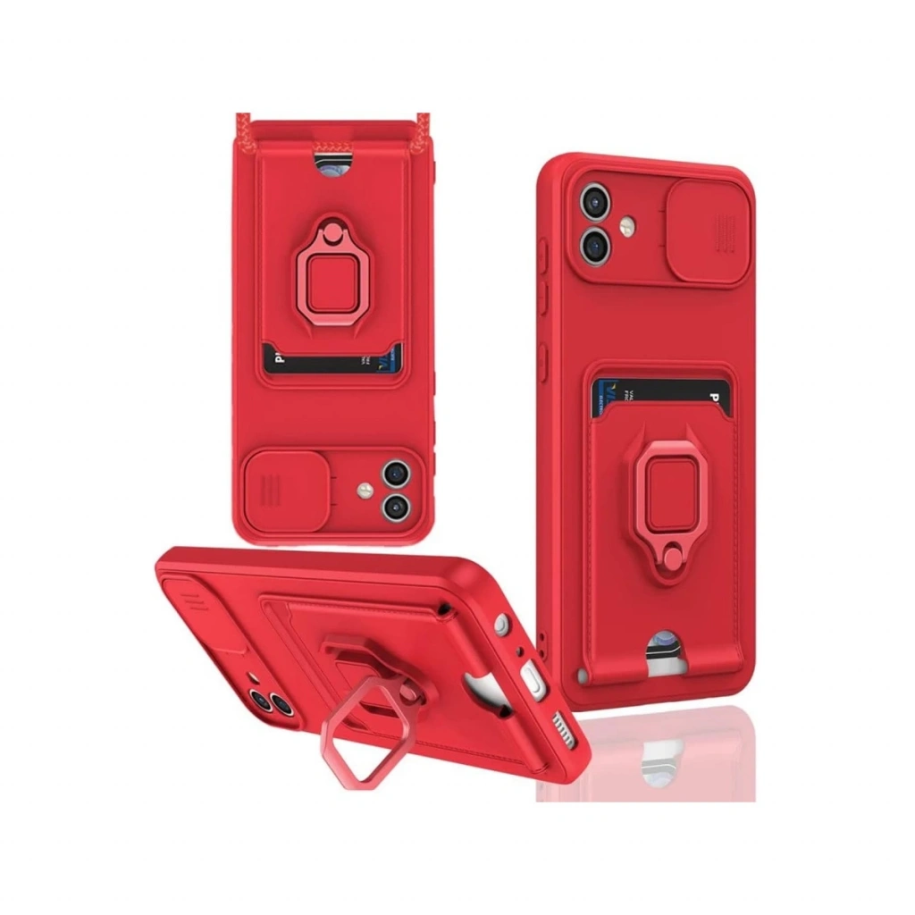 Samsung Galaxy A06 Kılıf Zuma Kartvizitli Yüzüklü Silikon - Kırmızı