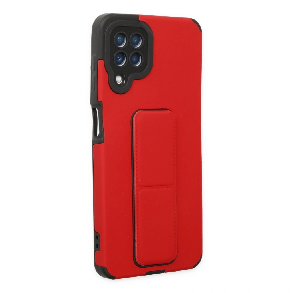 Samsung Galaxy A22 Kılıf Mega Standlı Silikon - Kırmızı