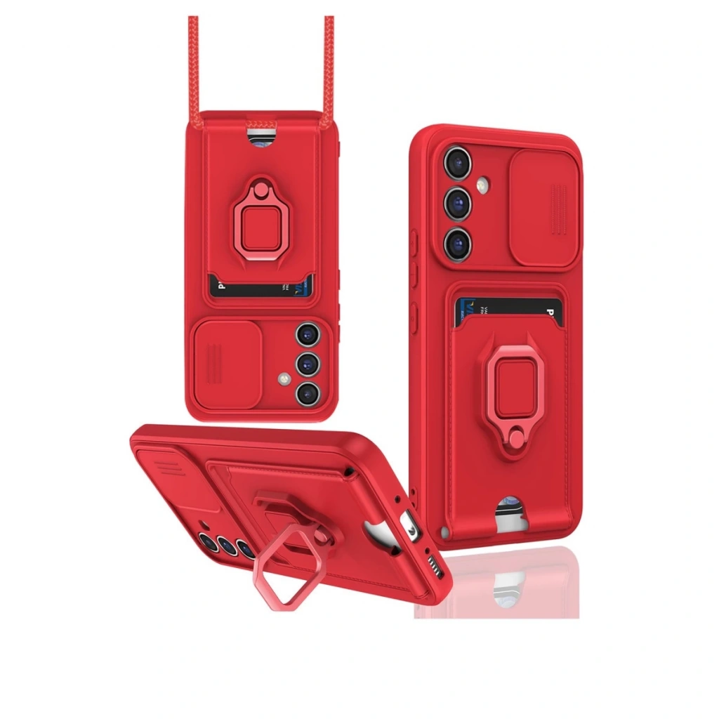 Samsung Galaxy A25 5g Kılıf Zuma Kartvizitli Yüzüklü Silikon - Kırmızı