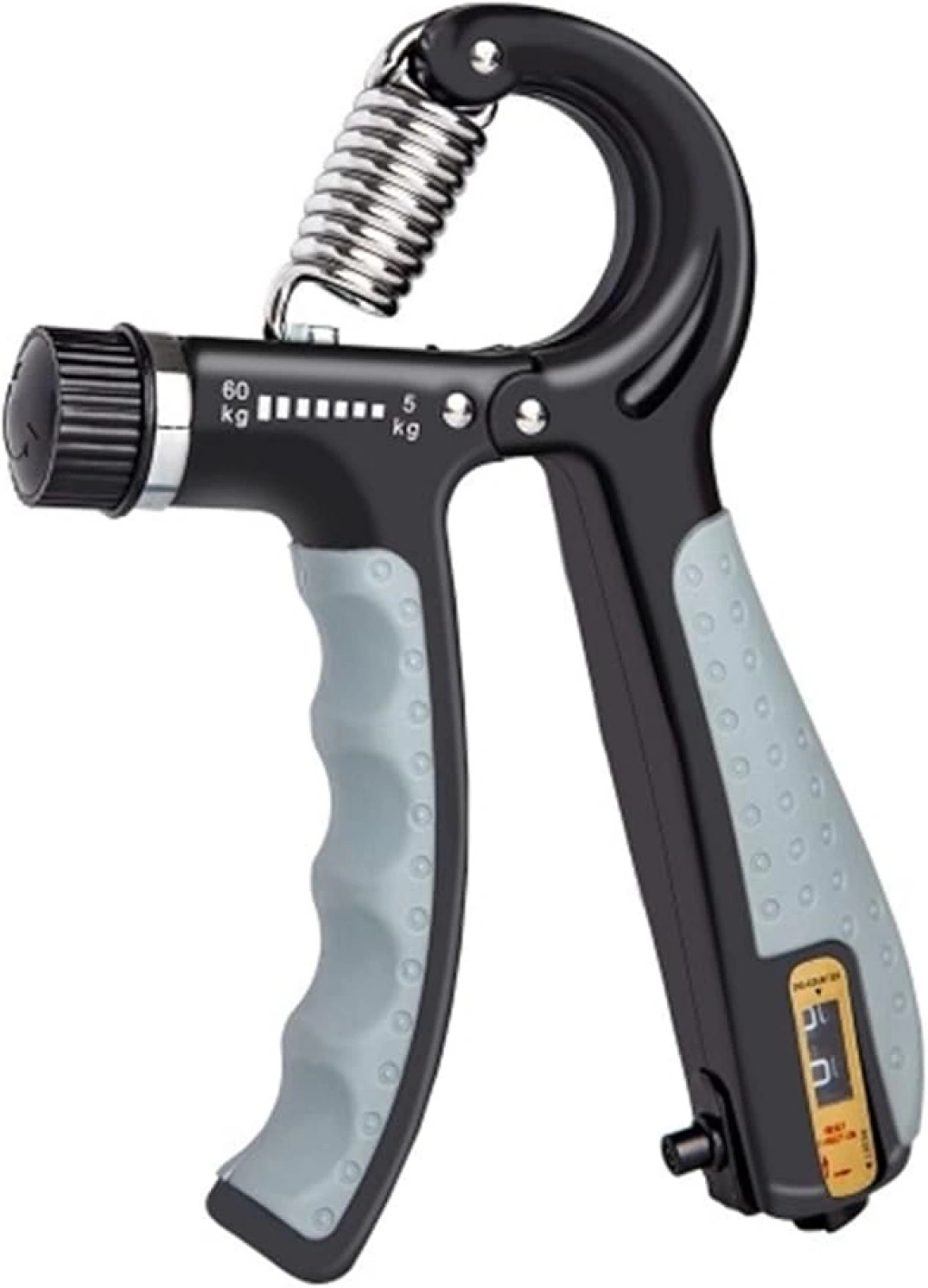 SAYAÇLI BİLEK GÜÇLENDİRME YAYI 5-60 KG.“Her An, Her Yerde Güçlenin!”Sayaçlı Bilek Güçlendirme Yayı, 5-60 kg arasında ayarlanabilir direnç özelliği sunar, böylece ihtiyacınıza uygun direnç seviyesini seçebilirsiniz. Üzerindeki sayaç, kullanım sayısını takip etmenizi sağlar. Ergonomik tasarımı ve yalnızca 155 gr ağırlığı ile televizyon izlerken veya masa başında çalışırken bile rahatça kullanılabilir. Tek veya iki elle kullanılarak el, bilek ve ön kol kaslarını etkili bir şekilde güçlendirir.Renkler stok durumuna göre karışık olarak gönderilecektir.Paket İçeriği1 adet sayaçlı bilek güçlendirme yayı
