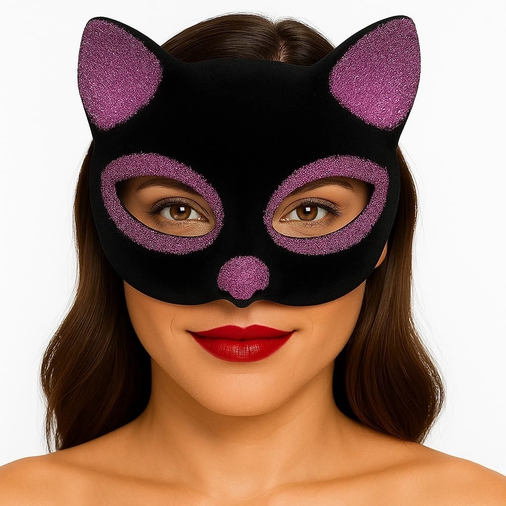 Siyah Renk Pembe Simli Süet Kedi Maskesi ile sevimli ve eğlenceli bir görünüm oluşturun ve özel günlerinizi unutulmaz kılın