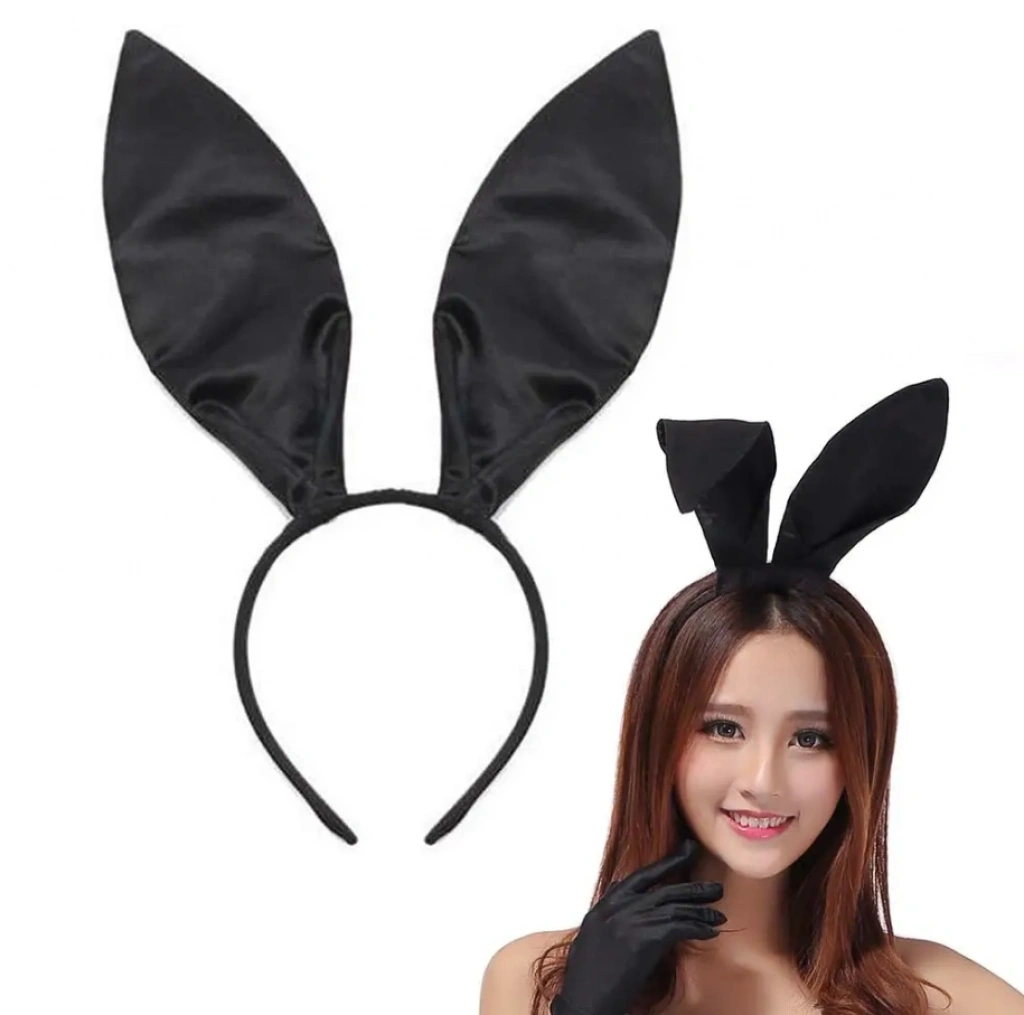 Siyah Renk Saten Kaplama Şekil Verilebilir Tavşan Kulak Taç