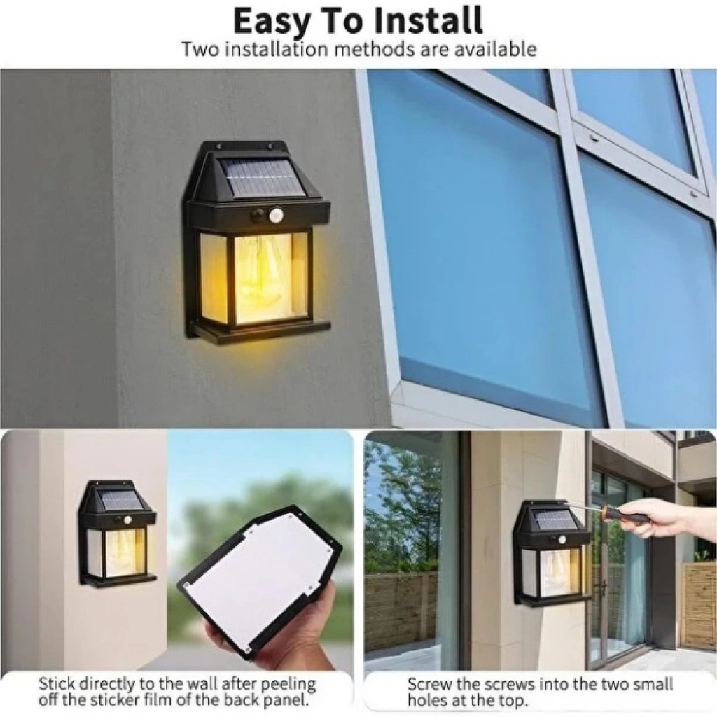 SOLAR RUSTİK AMPULLÜ DUVAR LAMBASI – GÜN IŞIĞIÜrün ÖzellikleriBahçenize, balkonunuza veya kapı girişlerinize modern bir dokunuşla nostaljik bir ışık katın! Solar Rustik Ampullü Duvar Lambası, kablo veya elektrik bağlantısına ihtiyaç duymadan, enerjisini tamamen güneşten alan çevre dostu bir aydınlatma çözümüdür. Üst kısmında bulunan yüksek verimli polikristal güneş panelleri sayesinde gün boyu enerji depolar ve karanlık çöktüğünde akıllı gece sensörü ile otomatik olarak devreye girer. İçerisindeki klasik görünümlü rustik LED ampul, göz yormayan, sıcak bir gün ışığı yayarak mekanınızda davetkar bir atmosfer yaratır. Hareket sensörü özelliği sayesinde güvenliğinizi artırırken, iki farklı kolay montaj seçeneği (yapıştırma veya vidalama) ile her türlü dış cephe yüzeyine saniyeler içinde uygulanabilir. Suya ve dış hava koşullarına dayanıklı yapısıyla uzun ömürlü kullanım sunar.Ürün Teknik ÖzellikleriÖzellikAçıklamaEnerji KaynağıGüneş Enerjili (Solar) - Polikristal Silikon PanelIşık RengiSıcak Sarı (Gün Işığı)Şarj SüresiGündüz 6-8 Saat (Güneş Işığına Bağlı)Çalışma SüresiTam Şarj ile 8 Saate Kadar Kesintisiz AydınlatmaSensör TipiAkıllı Gece Sensörü & Hareket SensörüMontajÇift Taraflı Bant (Yapıştırma) veya Vida ile SabitlemeKullanım AlanıBahçe, Teras, Veranda, Garaj Yolu, Dış CephePaket İçeriği1 Adet Solar Rustik Ampullü Duvar Lambası ve Montaj Ekipmanları.