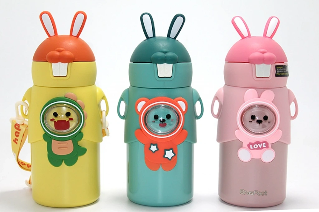 Tavşan Kulaklı Sevimli Ayı Figürlü Çelik Termos