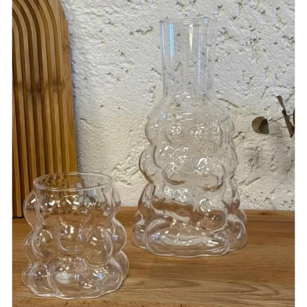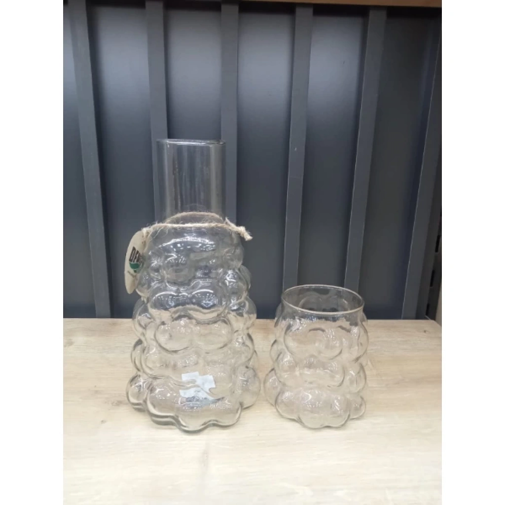 ÜZÜM DESENLİ BAŞUCU SÜRAHİSİÜrün ÖzellikleriÜzüm desenli başucu sürahisi, şeffaf camdan üretilmiştir ve şık tasarımıyla her ortamda dikkat çeker. Hem dekoratif hem de fonksiyonel olan bu sürahi ve bardağı özellikle yemek masalarında ya da başucunda kullanılmak için idealdir. Üzüm desenleri, ürünün zarif bir görünüme sahip olmasını sağlar. İster soğuk ister sıcak içecekler için kullanılabilir.Paket İçeriği1 Adet Üzüm Desenli Başucu Sürahisi