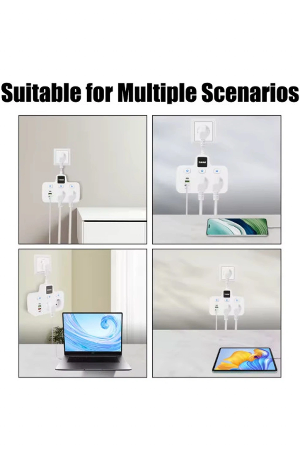 Uygun güç şeridi: bu ab fişi güç şeridi, aynı anda birden fazla cihazı rahatça takmanıza izin veren USB bağlantı noktaları ve çoklu soketlerle donatılmıştır.