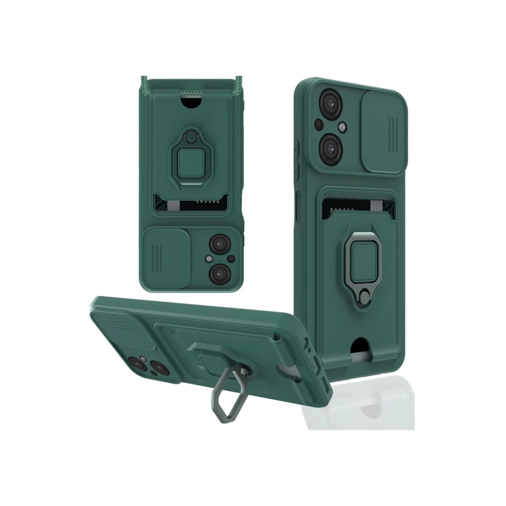 Xiaomi Poco M5 Kılıf Zuma Kartvizitli Yüzüklü Silikon - Yeşil