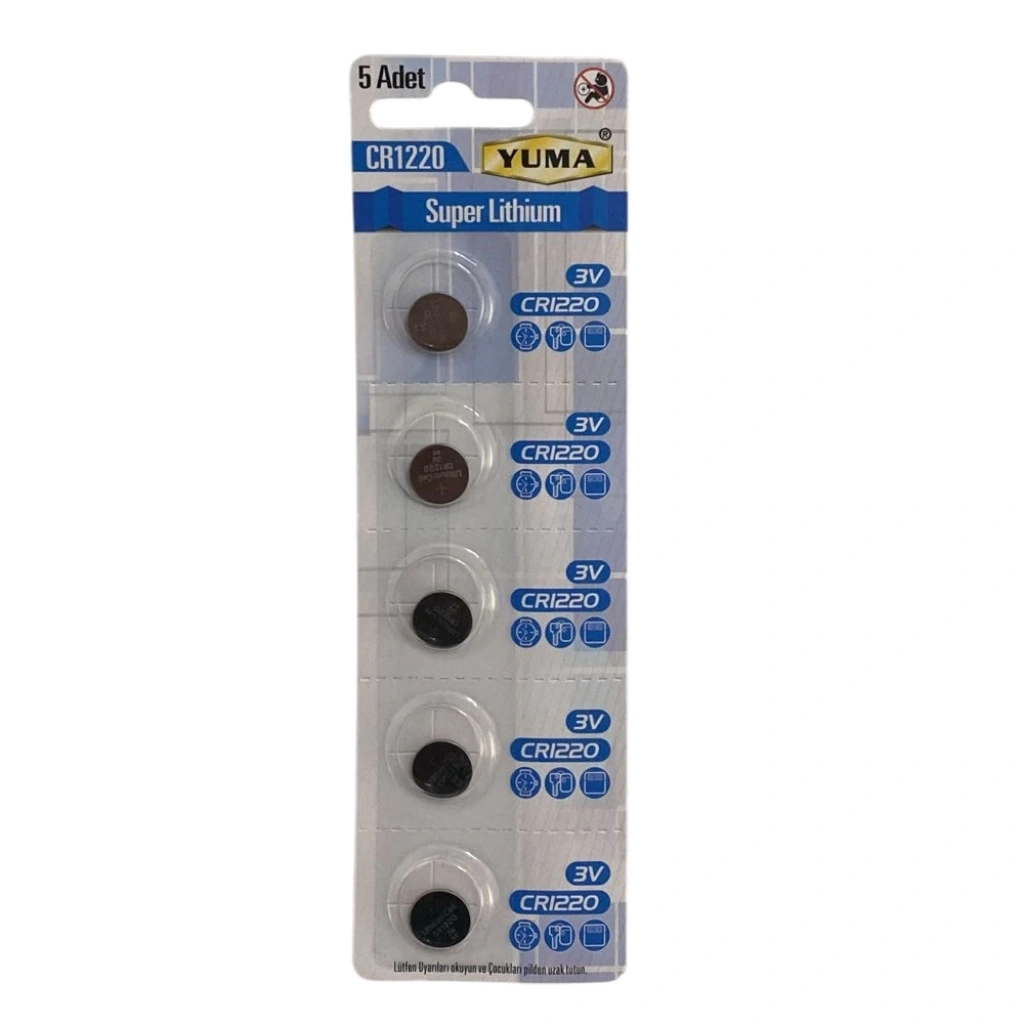 Yuma CR1220 Süper Lityum 3V 5'li Kart Düğme Pil