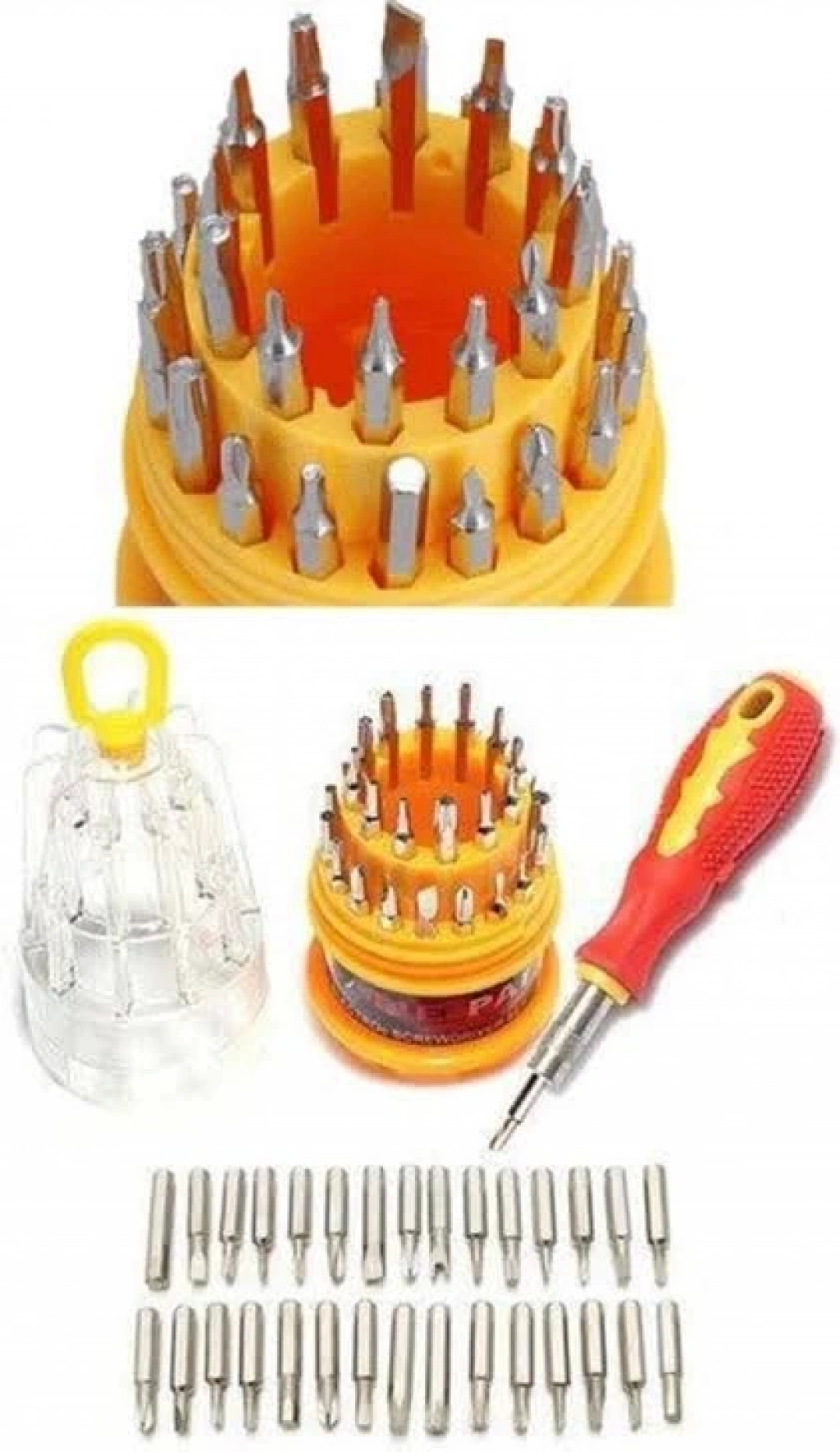 YUMURTA TORNAVİDA SETİ 31 PARÇAHassas İşlerin Ustası: Yumurta Tornavida Seti”Yumurta Tornavida Seti 31 Parça • Çok Amaçlı Tornavida Seti: Laptop, cep telefonu ve diğer hassas cihazlar için ideal. • Metal Başlıklar: İnce ve küçük yerlere kolayca ulaşabilecek şekilde tasarlanmıştır. • Kauçuk Tutma Yerleri: Rahat ve güvenli kullanım sağlar. • Set İçeriği: 1 adet tornavida sapı ve 30 parça metal başlık.Paket İçeriği1 adet 31 parça yumurta tornavida seti
